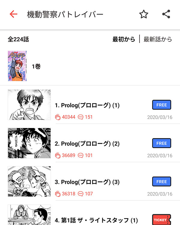 機動警察パトレイバーを全巻(全話)無料で読めるアプリ!